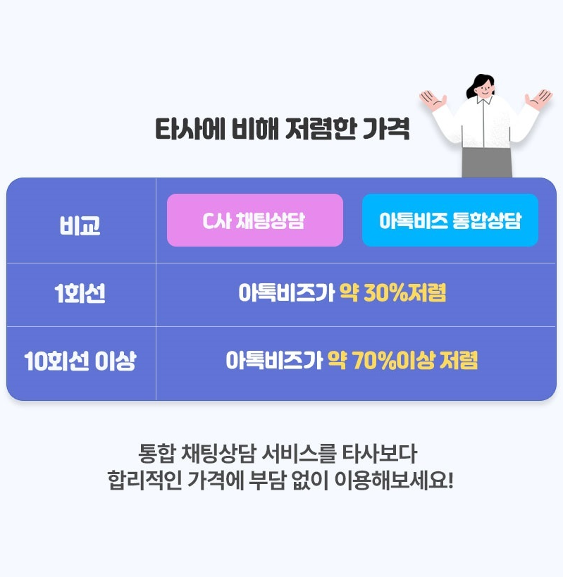 아톡비즈 채팅상담 비용과 활용 방법이 궁금하시다면 아래의 배너 링크를 통해 무료 온라인 문의 해 보세요. 감사합니다.😊